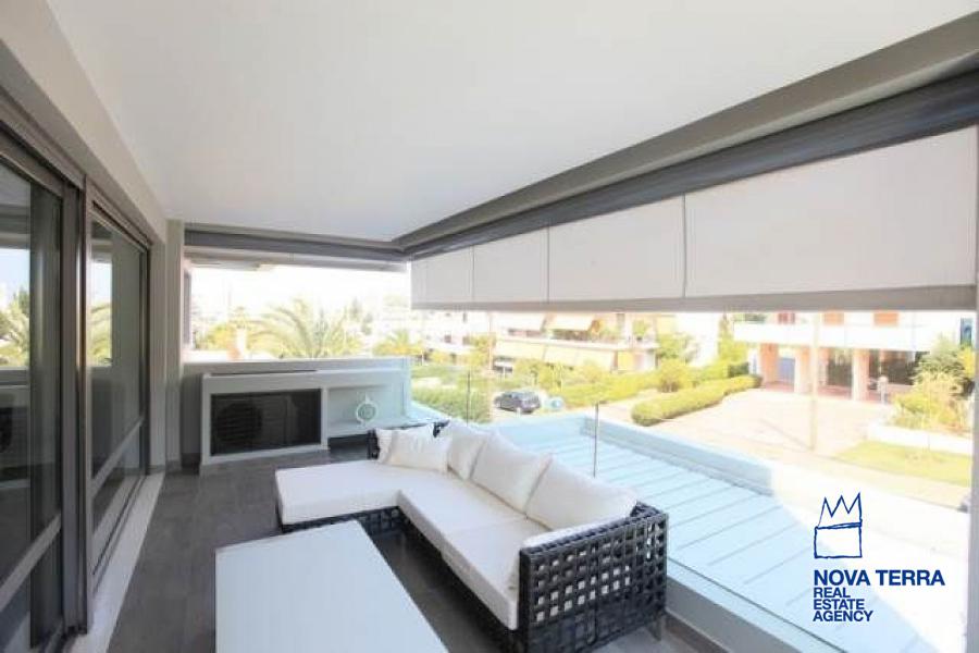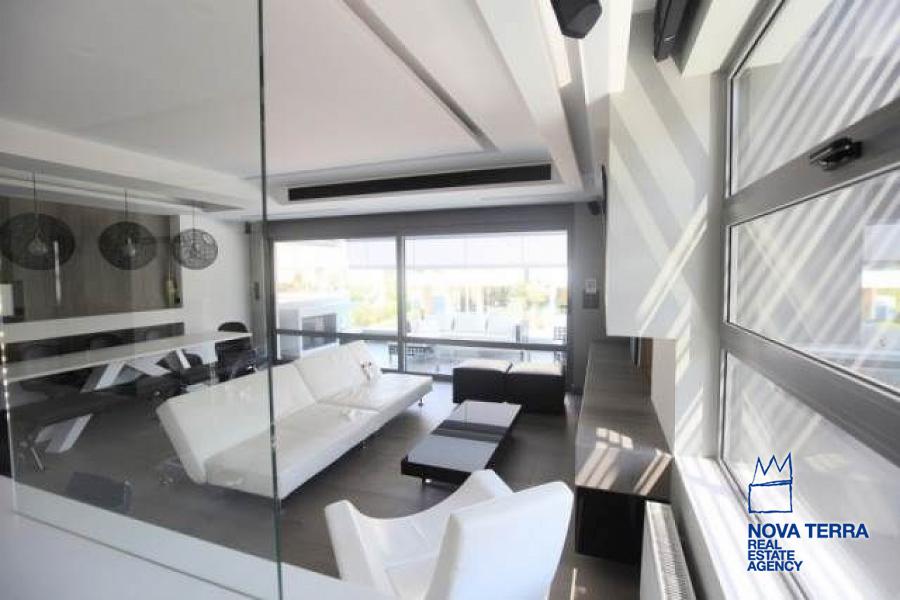 Καταπληκτικό επιπλωμένο διαμέρισμα στη Γλυφάδα 115τμ γωνιακό, Lux κατασκευής, minimal design, hi-tech, γνωστού επώνυμου αρχιτέκτονα, με Innox, γυαλί, ξύλο.