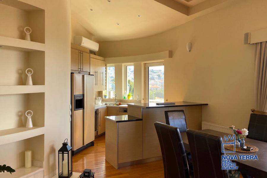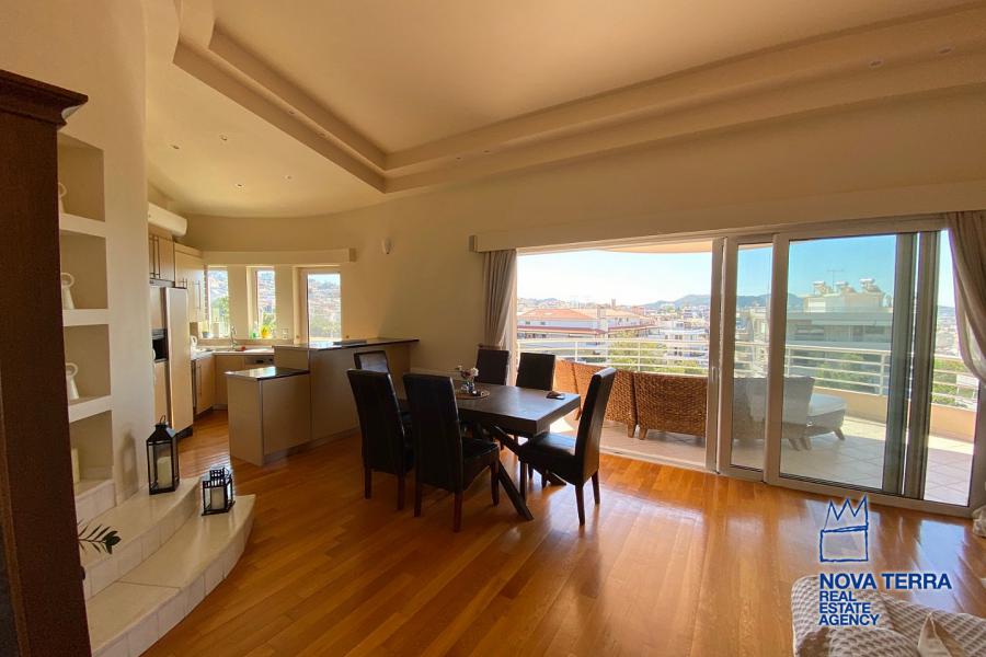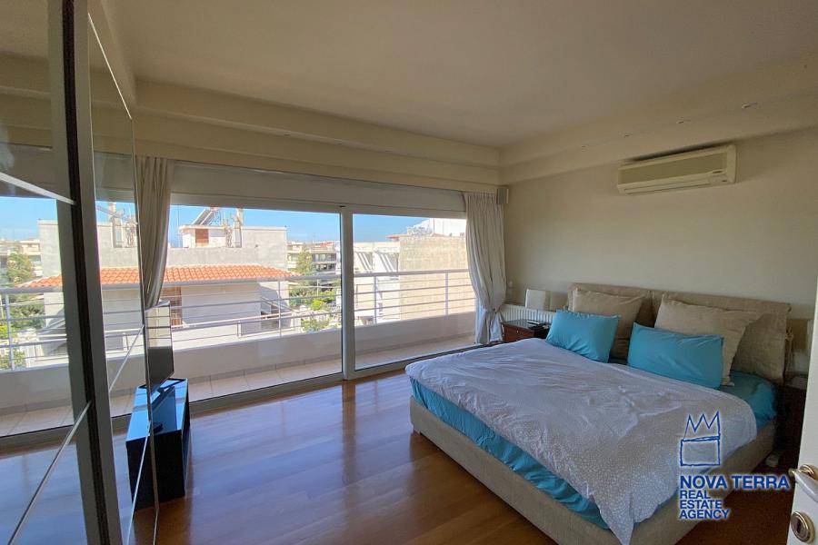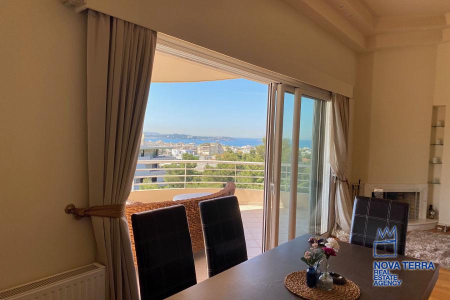 Βούλα (Κάτω) , διαμέρισμα 100τ.μ , 4ος Ρετιρέ , 2 υπνοδωμάτια , 2 μπάνια , τζάκι , δρύινα πατώματα , εντοιχισμένα ηλεκτρικά κουζίνας , κλιματιστικά , αυτόνομη θέρμανση πετρελαίου , συναγερμός , σίτες , μεγάλη βεράντα , γκαράζ, απεριόριστη θέα θάλασσα , 2.500€.