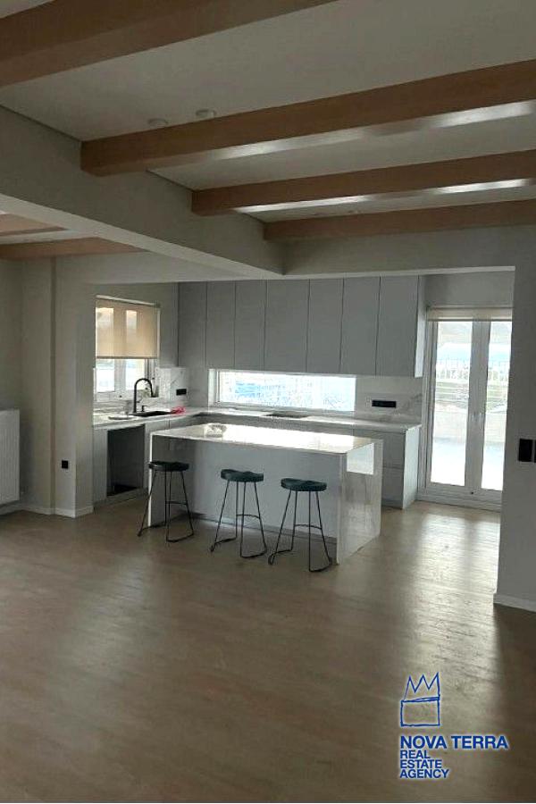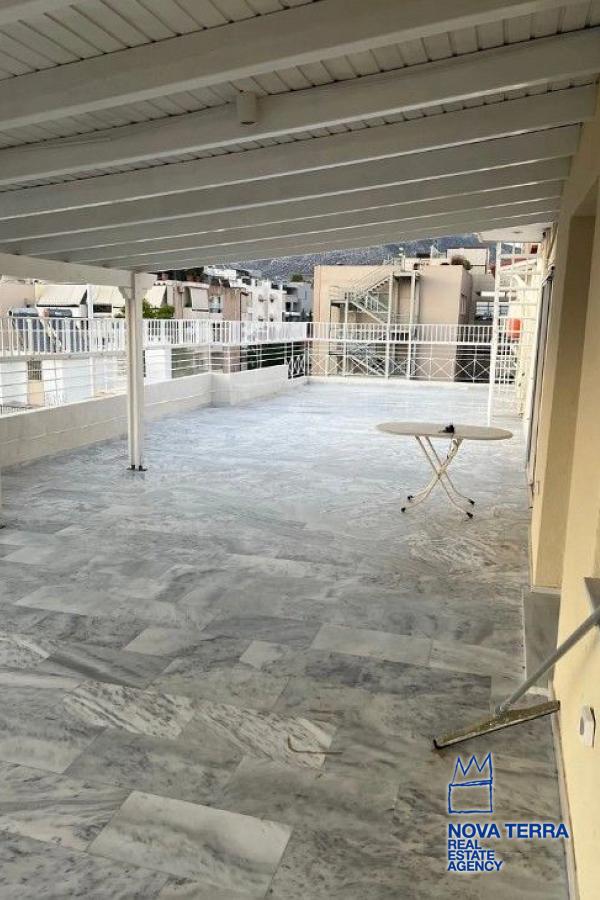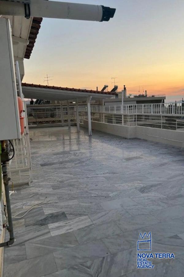 Οροφοδιαμέρισμα 4ου όροφου ανακαινισμένο το 2024 122 τ.μ. με 130 τ.μ. μπαλκόνι με θέα θάλασσα και βουνό.Το διαμέρισμα έχει πλήρης αυτόνομη θέρμανση φυσικού αερίου και ηλιακό θερμοσίφωνο.Δεν επιτρέπονται κατοικίδια.