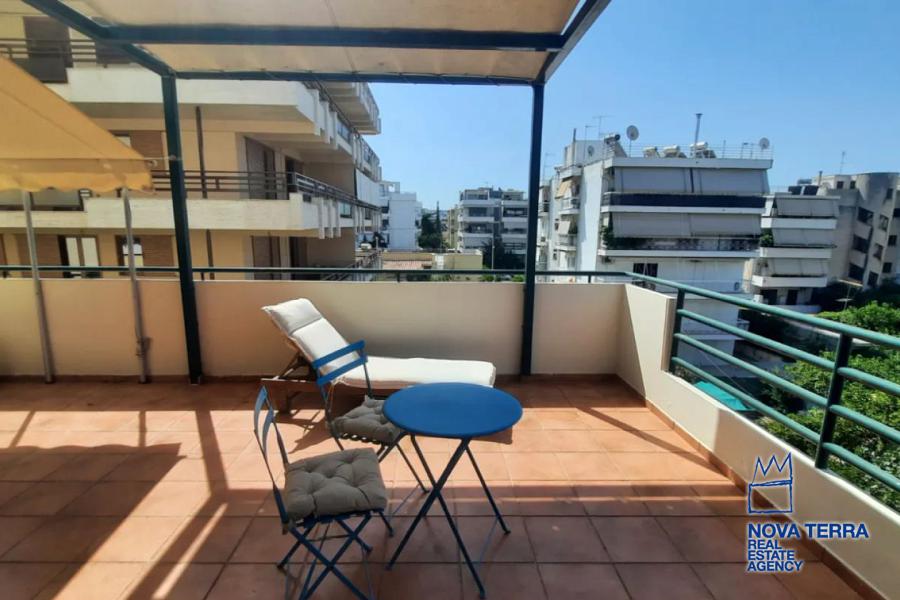 Διαμέρισμα 53τμ, φωτεινό, ηλιόλουστο, με βεράντα 30τμ, ήσυχο, βλέπει πίσω στον κήπο, σε προνομιακή θέση, μόλις 2 λεπτά με τα πόδια απ το κέντρο της Γλυφάδας, σε άριστη κατάσταση