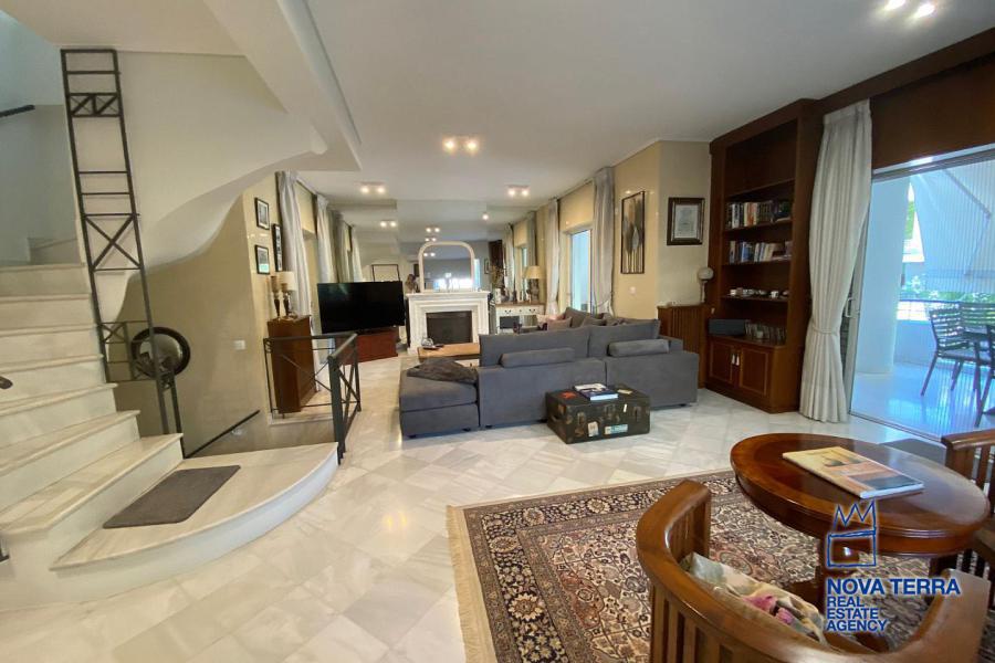ΒΟΥΛΑ - ΒΟΥΛΑ ΚΑΤΩ, Μεζονέτα, 290 τ.μ, κατασκευή 1992, 4 δωμάτια, Ημιυπόγειο, Ισόγειο, 1 ος, Θεα: Βασικά χαρακτηριστικά: Αποθήκη, Βεράντα, Κήπος, Κουζίνα, Μπάνιο (4), Ν_WC, Πισίνα, Σαλόνι, Τζάκι (2), Master Bedrooms: 1 Master Bedroom, Δάπεδα: Δρύινα, Μάρμαρο, Θέρμανση: Αυτόνομη Θέρμανση (αυτον. εγκατ), Βαμμένο, Διαμπερές, Διπλά τζάμια, Κουφώματα αλουμινίου, Οικιστική ζώνη, Πολυτελές, Πόρτα Ασφαλείας, Πρόσβαση από άσφαλτο, Συναγερμός, Τέντες, Φωτεινό, Άριστη κατάσταση: Επιτρέπονται κατοικίδια: Χώρος στάθμευσης: Parking, Ενεργειακή κλάση: B, κωδικός ακινήτου: 46952, www.nova-terra.gr