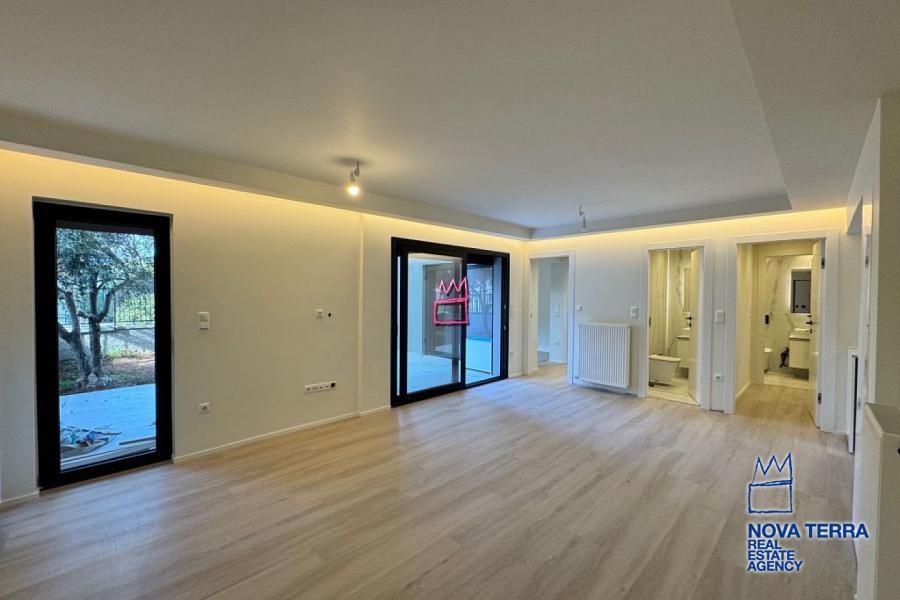 Πολυτελέστατο διαμέρισμα ισόγειου 81 τ.μ. με ιδιωτικό κήπο των 73 τ.μ. διαθέτει έναν ενιαίο και φωτεινό χώρο καθιστικού με τραπεζαρία , κουζίνα open plan ,2 μαστερ υπνοδωμάτια (2 μπάνια) και 1 λουτρό. Αυτόνομη θέρμανση με αντλία θέρμανσης και μέσω σωμάτων, σύστημα ψύξης VRV και ανοιχτή θέση πάρκινγκ.