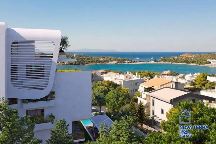 Οροφοδιαμέρισμα σε πολυτελή συγκρότημα κατοικιών σύγχρονης αισθητικής με απεριόριστη θέα θάλασσα, διαθέτει βεστιάριο, ανεξάρτητο χώρο laundry, ανελκυστήρα, μεγάλες βεράντες