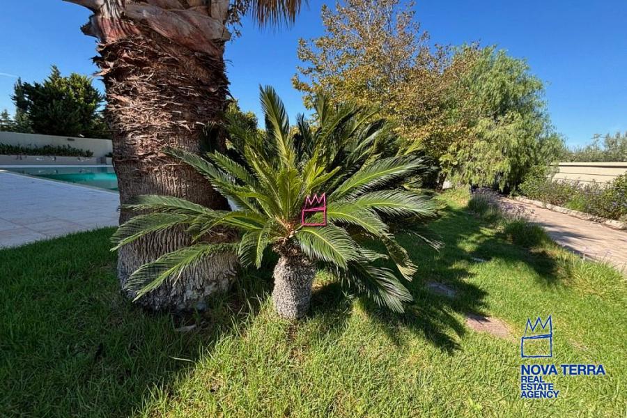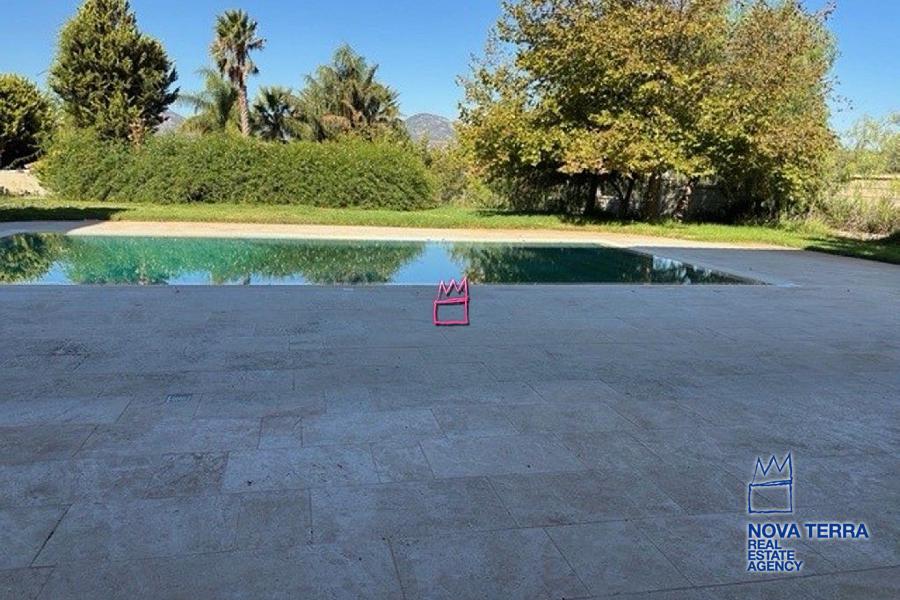 Επίσης διαθέτει δρύινα πατώματα, αυτόνομη θέρμανση φυσικού αερίου, κλιματισμός , διπλά τζάμια, δορυφορική τηλεόραση, πισίνα , ηλεκτρικά ρολά, ηλιακό θερμοσίφωνα και χώρο στάθμευσης έξι (6) αυτοκινήτων.