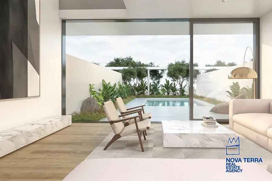ισόγεια μεζονέτα αποκλειστική χρήση κήπου και πισίνας, συνολικής επιφάνειας 130,85 τ.μ., αποτελείται από ενιαίο χώρο καθιστικού με τραπεζαρία και μοντέρνα κουζίνα με νησίδα, 3 υπνοδωμάτια, 2 μπάνια, 1 WC επισκεπτών, laundry room, αποθήκη και υπόγεια θέση στάθμευσης με φορτιστή ηλεκτρικού οχήματος.