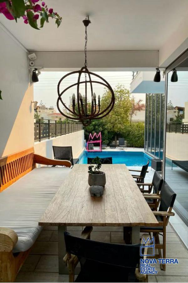 Μοναδική μονοκατοικία προς ενοικίαση, 450τμ, τριών επιπέδων σε ήσυχη γειτονία, μοντέρνα, minimal, με τρία υπνοδωμάτια master, τρία μπάνια με αποθήκη, χώρο στάθμευσης και δωμάτιο υπηρεσίας. Η μοναδική αισθητική του ακινήτου θα σας μαγέψει, το ακίνητο διαθέτει επίσης εξοπλισμένη κουζίνα με ηλεκτρικές συσκευές miele, δρύινα δάπεδα, τζάκι, πισίνα και αυτονομία θέρμανσης. Το ακίνητο δίνεται και επιπλωμένο. Σας το προτείνουμε ανεπιφύλακτα!