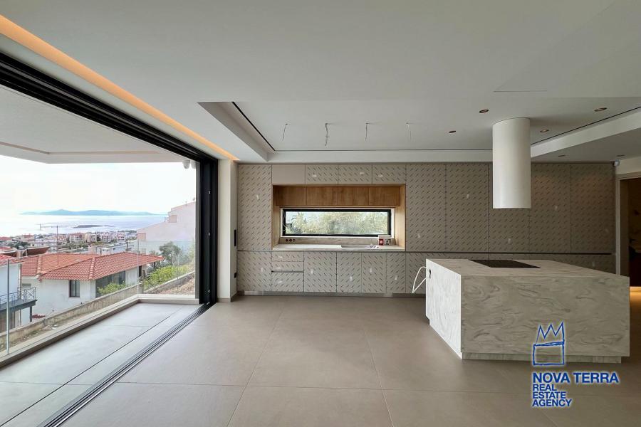 Νεόδμητη Μεζονέτα Ισογείου προς Ενοικίαση 145 τ.μ., σε οικόπεδο 350 τ.μ., κατασκευής του 2025 με θέα θάλασσα.