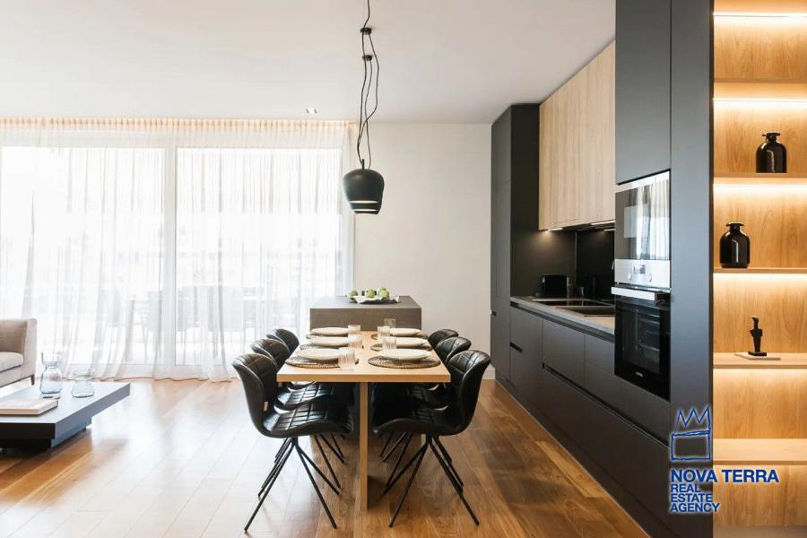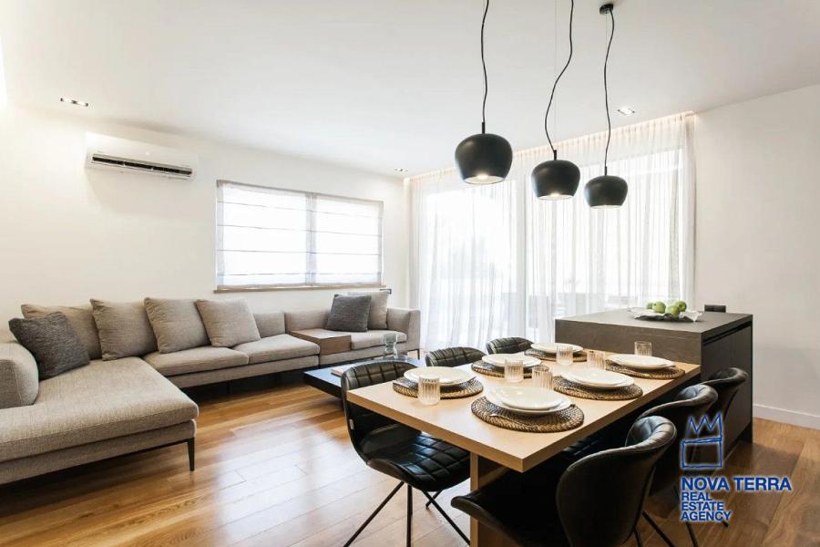 Διαθέτει 3 master υπνοδωμάτια με ιδιωτικά μπάνια, μεγάλο καθιστικό με ανοιχτή κουζίνα, ευρύχωρα μπαλκόνια και σύγχρονες παροχές.