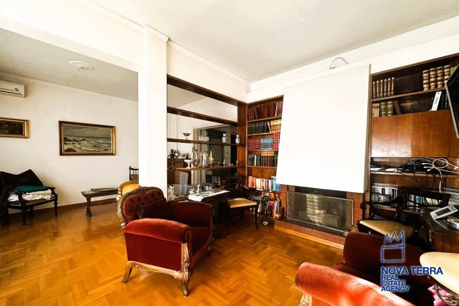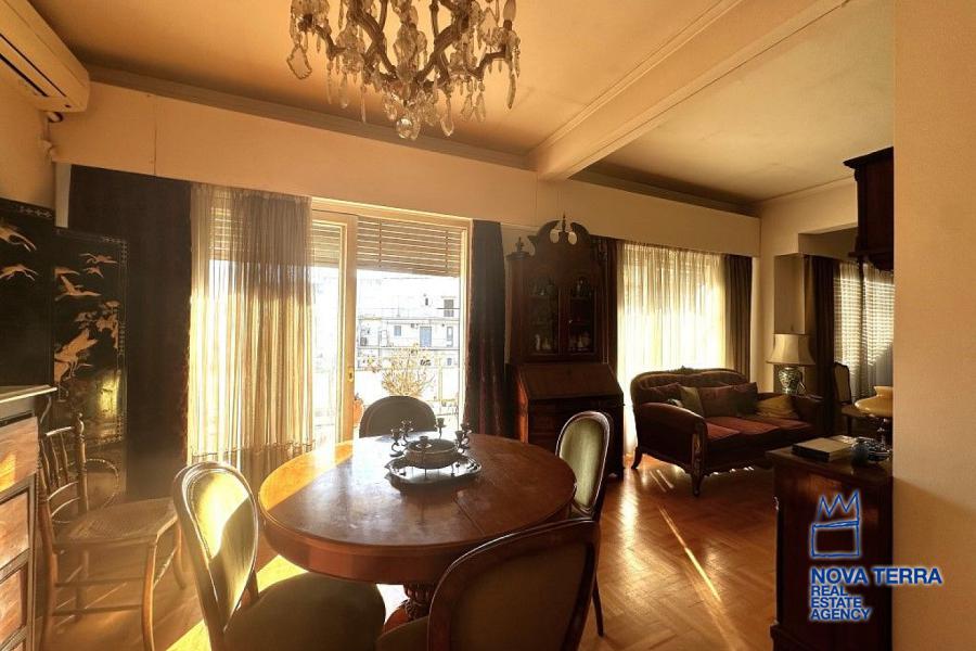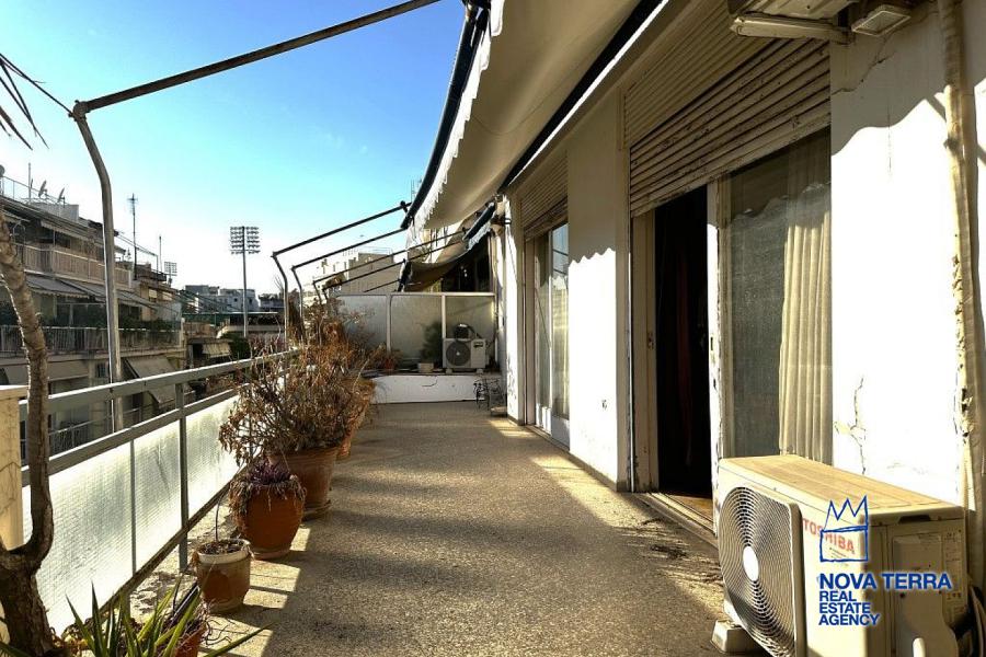 Εξαιρετικό διαμέρισμα 135 τμ, 4ου ορόφου (πρώτο ρετιρέ), με μεγάλη πρόσοψη και βεράντα, πλησίον μετρό και αγοράς. Αποτελείται από 2 Υ/Δ, δωμάτιο υπηρεσίας, μπάνιο, wc ξένων, χώρο υποδοχής με τζάκι, ανεξάρτητη κουζίνα, δρύινα δάπεδα, θέρμανση με φυσικό αέριο και πόρτα ασφαλείας.