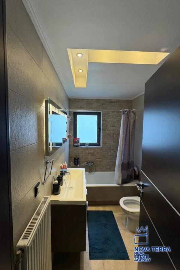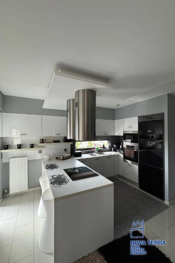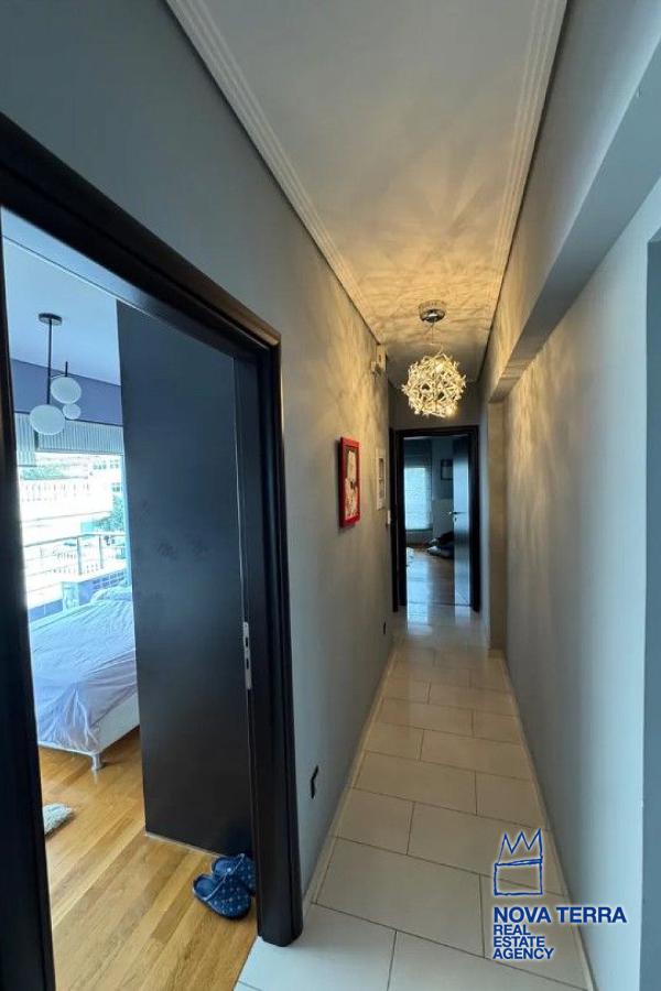 Η κουζίνα είναι πλήρως εξοπλισμένη με καινούργιες εντοιχιζόμενες ηλεκτρικές συσκευές, ενώ το διαμέρισμα διαθέτει ειδικές κατασκευές ψευδοροφής με κρυφό φωτισμό, αναδεικνύοντας τον σύγχρονο χαρακτήρα του χώρου. Υπάρχει επίσης υποδομή φόρτισης ηλεκτρικού αυτοκινήτου στο υπόγειο parking.