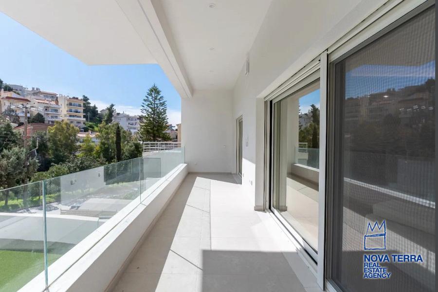 Πολυτελές, σύγχρονο και πλήρως εξοπλισμέvο διαμέρισμα ενεργειακης κλασης Α+ , υψηλών προδιαγραφών εντός boutique συγκροτήματος κατοικιών με αξεπέραστες κοινόχρηστες παροχές (φυλάκειο, γυμναστήριο, επαγγελματικό laundry room και inhouse καθαριότητα) στην περιοχή Πανόραμα Βούλας.