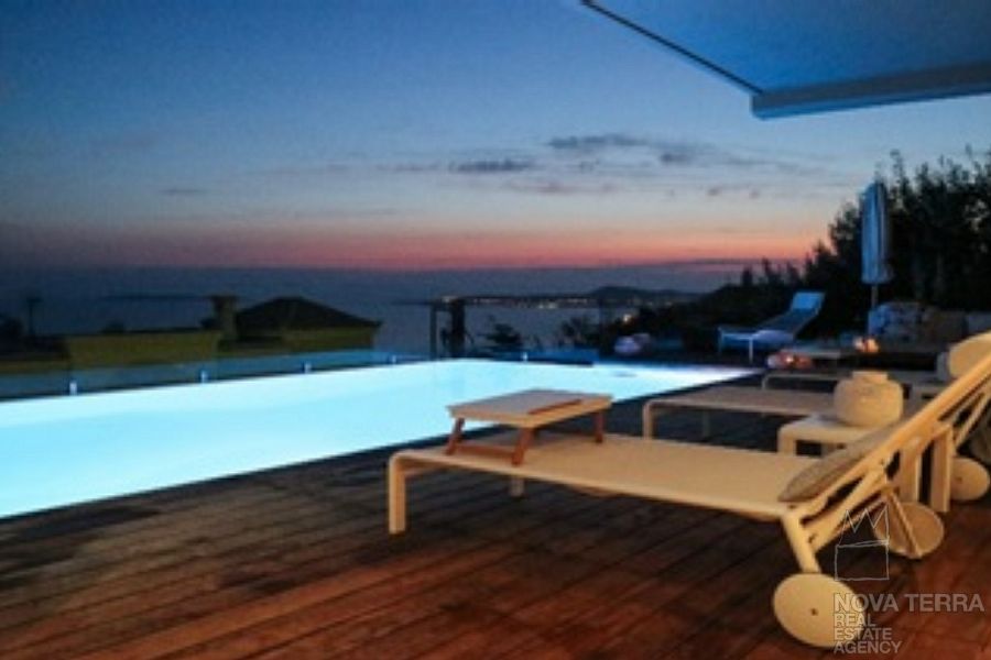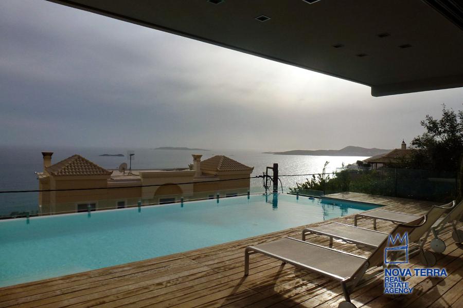 AGIA MARINA, House, 500 sq.m, on a plot of 650 sq.m, year built 2004, 5 rooms, Ground Floor, 1st, 2nd, View: Seaview, Unobstracted view, Various Characteristics: Balcony, Bath (4), Escalator, Fire Place (2), Playroom, Store Room, Swimming Pool, Toilet, Master Bedrooms: 3 Master Bedrooms, Flooring: Wooden floor, Heating: Air Conditioning, Autonomous Heating, , Boiler, Computer Terminal Ready, Detached, From Side to Side, Luxury, Maid Room (2), Satellite TV, Seaside, Security Alarm, Security Door, Parking area: Garage (6), property ID: 15901, www.nova-terra.gr