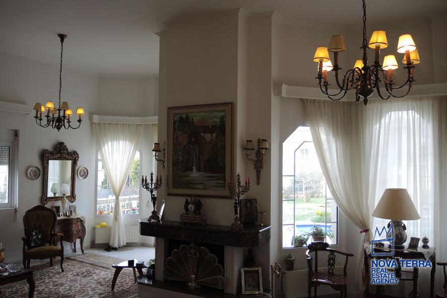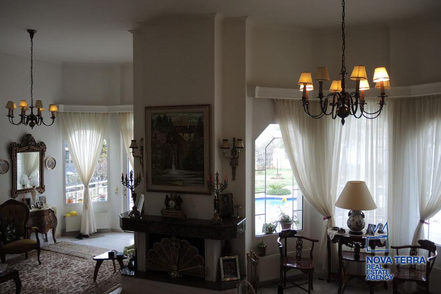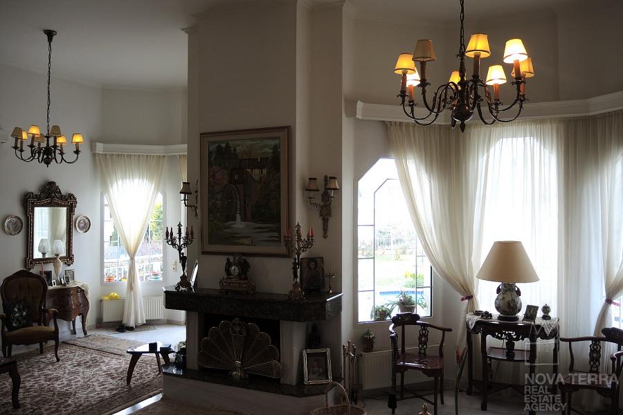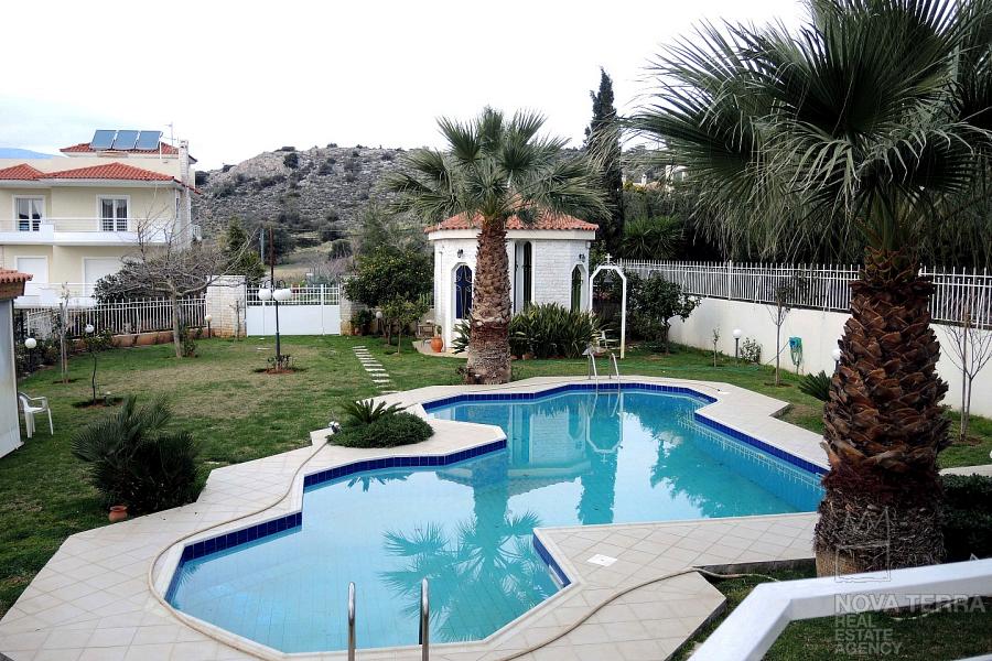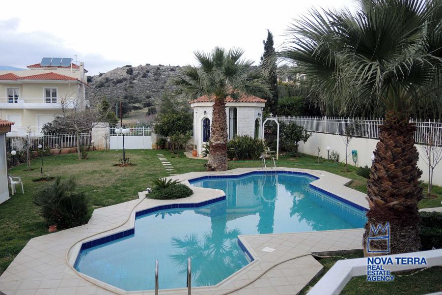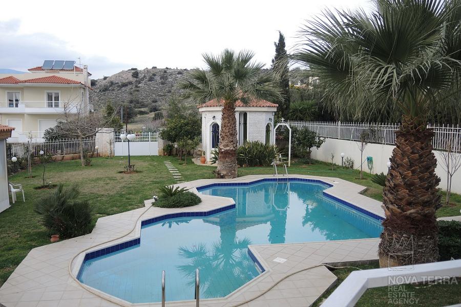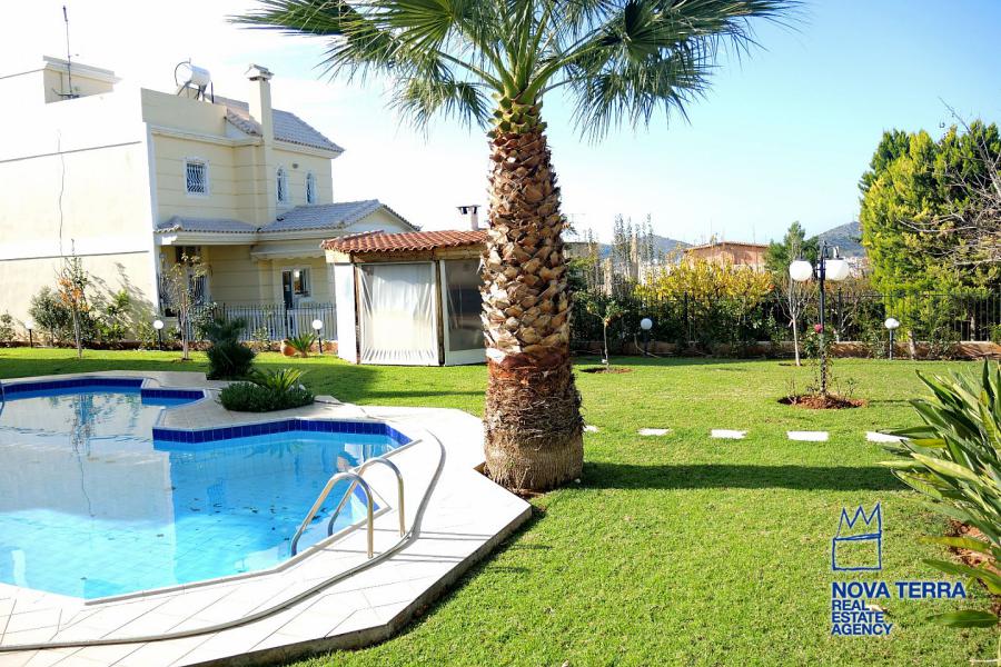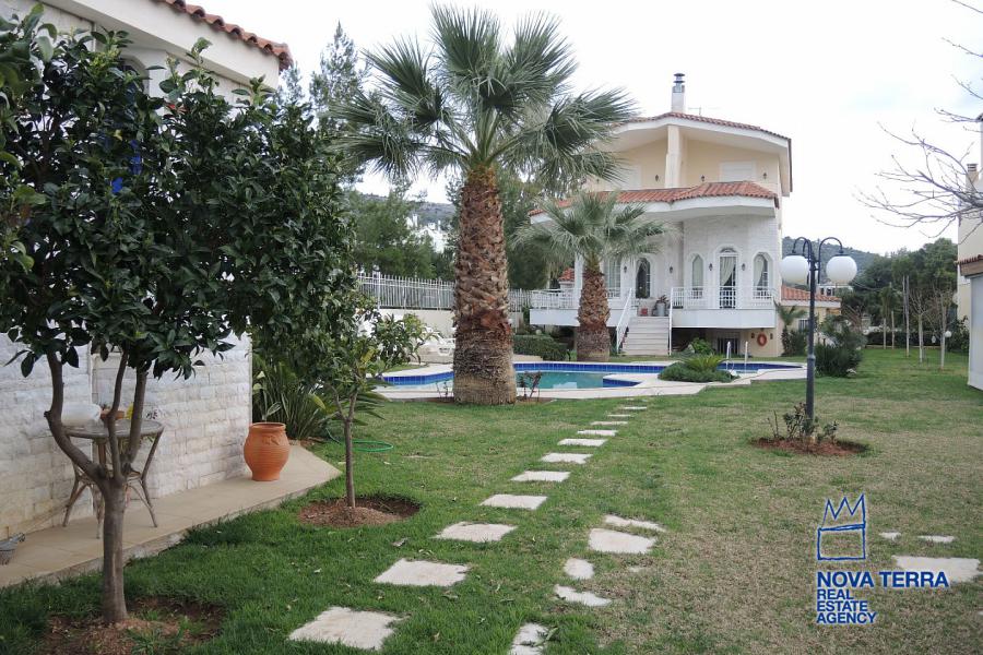 VARI, House, 360 sq.m, on a plot of 1100 sq.m, year built 2003, 3 rooms, Ground Floor, 1st, 2nd, View: Seaview, Various Characteristics: Balcony, Bath (3), Fire Place, Garden, Store Room, Swimming Pool, Master Bedrooms: 2 Master Bedrooms, Flooring: Tile, Heating: Autonomous Heating, Corner Block, Detached, From Side to Side, Luxury, Satellite TV, Security Alarm, Security Door, Parking area: Parking (3), property ID: 23628, www.nova-terra.gr