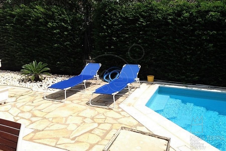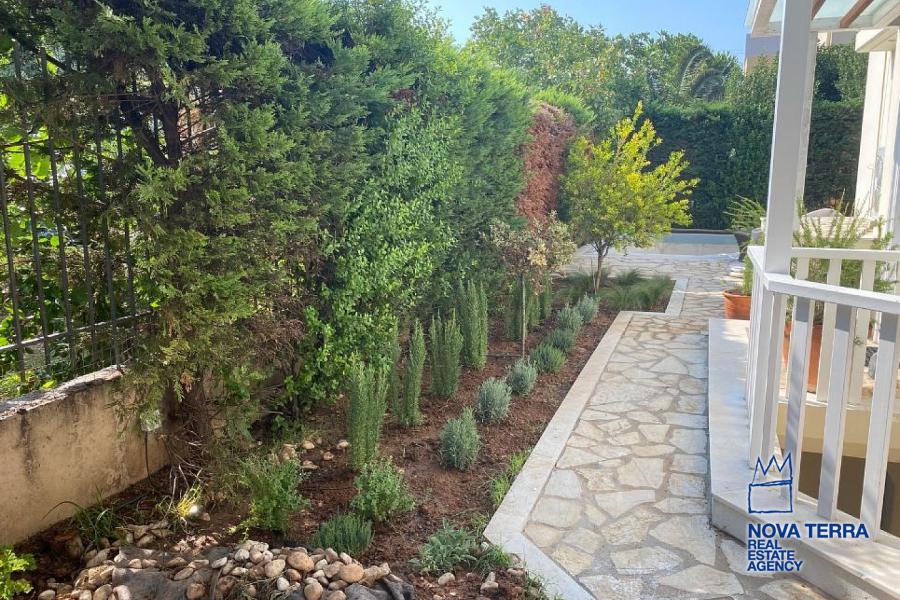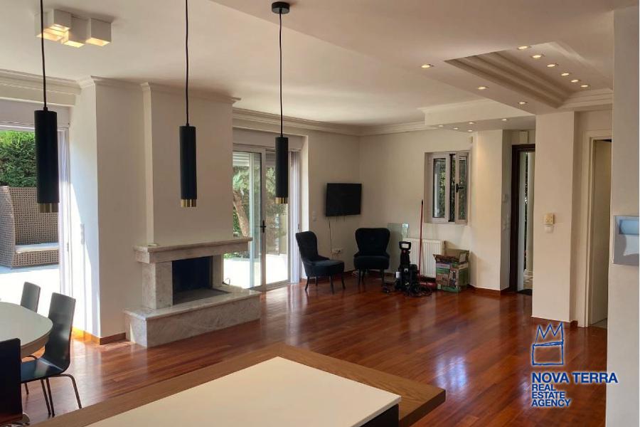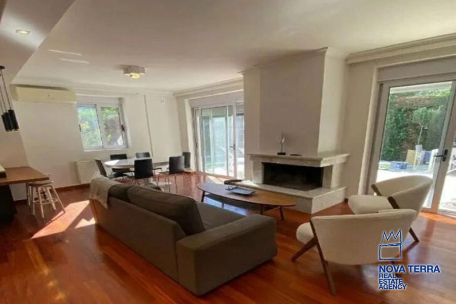 VARI - KORMPI, House,, Rental, 251 sq.m, on a plot of 300 sq.m, year built 2007, 4 rooms, Ground Floor, 1st, 2nd, Various Characteristics: Balcony, Bath (4), Escalator, Fire Place (2), Furnished, Garden, Kitchen, Living room, Refurbished, Store Room, Swimming Pool, Master Bedrooms: 1 Master Bedroom, Flooring: Wooden floor, Heating: Air Conditioning, Autonomous Heat oil, Access road, Aluminium panels, Bright, Detached, Double-glazing, Facade, From Side to Side, Luxury, Newly built, Painted, pets allowed, Residential area, Satellite TV, Screens, Security Alarm, Security Door, Solar Heating, Tents, In perfect condition: Pets allowed: Satellite dish: For investment: Parking area: Parking, Energy class: B+. property ID: 26428, www.nova-terra.gr
