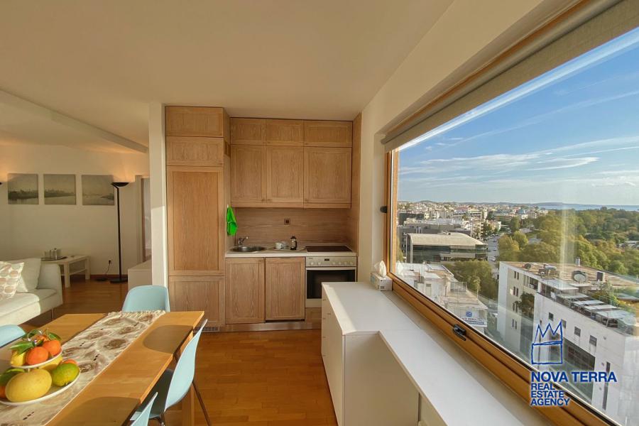 It is fully furnished, offering a sunny open plan living room-kitchen area and a bedroom with a bathroom.