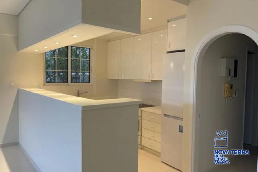 Vouliagmeni Center Apartment for Rent - 85 sq.m, 2 bedrooms, built in 1997, renovated in 2004. Features unobstructed views, balcony, fireplace, garden, and more. Luxury property with parking, security alarm, and satellite TV. Energy class B. Property ID: 41204. Visit www.nova-terra.gr for more information.