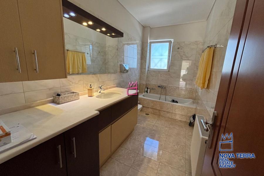 VARI - KORMPI, House,, Sale, 350 sq.m, on a plot of 640 sq.m, year built 2009, 6 rooms, 1st, View: Various Characteristics: Balcony, Bath (4), Escalator, Fire Place, Garden, Kitchen, Living room, Refurbished, Store Room, Toilet, Flooring: Tile, Wooden floor, Heating: Autonomous Heat oil, Access road, Aluminium panels, BBQ, Bright, Corner Block, Double-glazing, Electric Roller Windows, Facade, From Side to Side, Luxury, Newly built, Painted, pets allowed, Residential area, Satellite TV, Security Alarm, Security Door, Solar Heating, Tents, In perfect condition: Pets allowed: Satellite dish: For investment: Parking area: Garage (4), Energy class: Β. property ID: 45653, www.nova-terra.gr