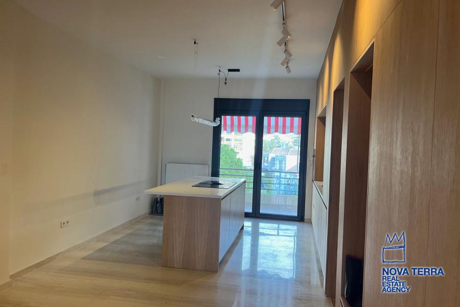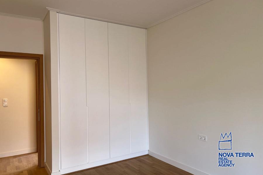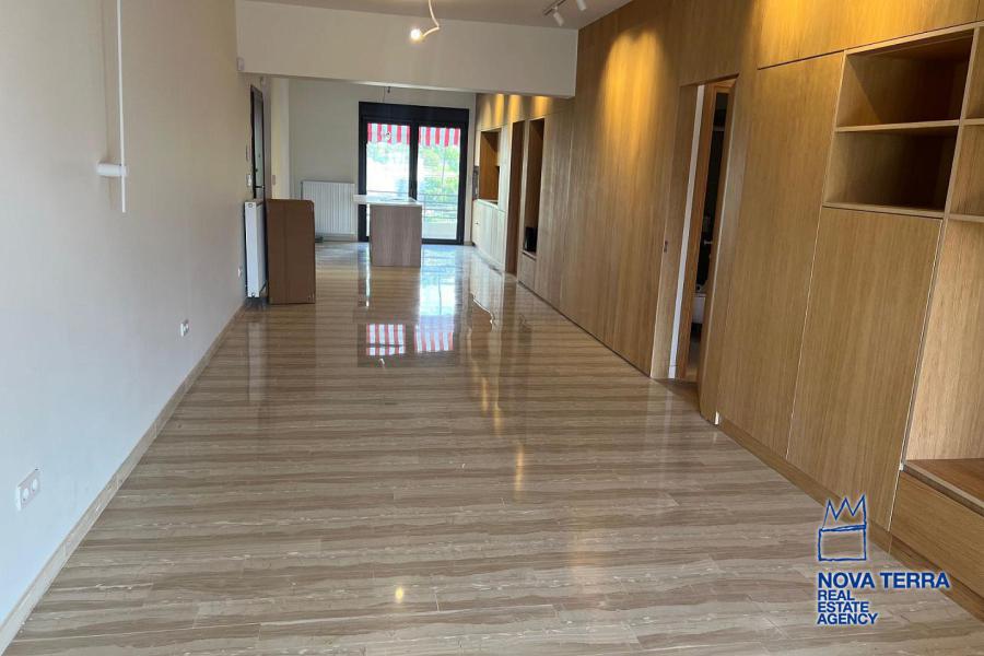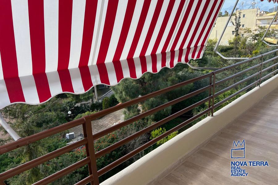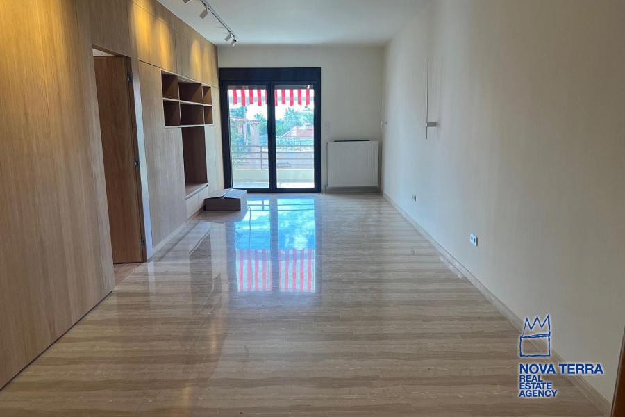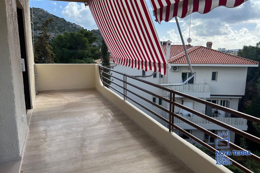 VOULIAGMENI - SYNIKISMOS EMPORIOU Apartment for Rent, 115 sq.m, built in 1970, 2 bedrooms, 3rd floor, Woodland view. Features include balcony, 2 bathrooms, kitchen, living room, refurbished, storage room, master bedroom, marble and wooden flooring, air conditioning, oil heating, access road, aluminum panels, security alarm, solar heating, study. Parking available. Energy class: C. Property ID: 46991. Visit www.nova-terra.gr for more information. Luxurious and in perfect condition. Located in a residential area.