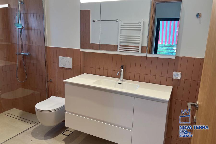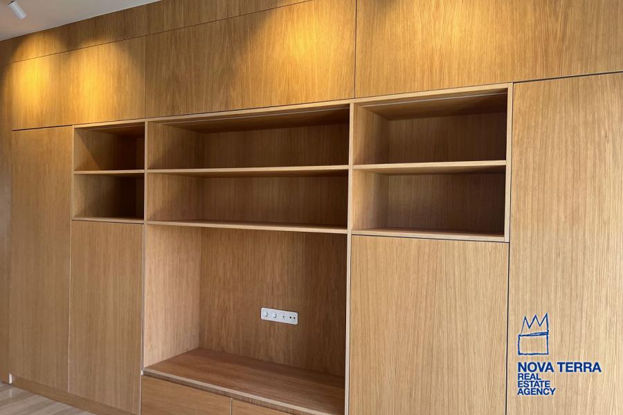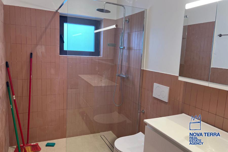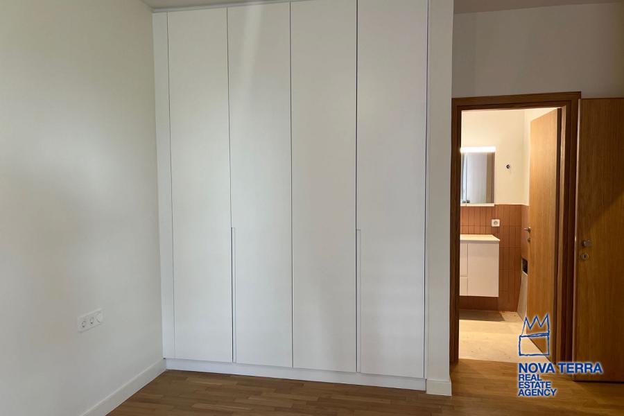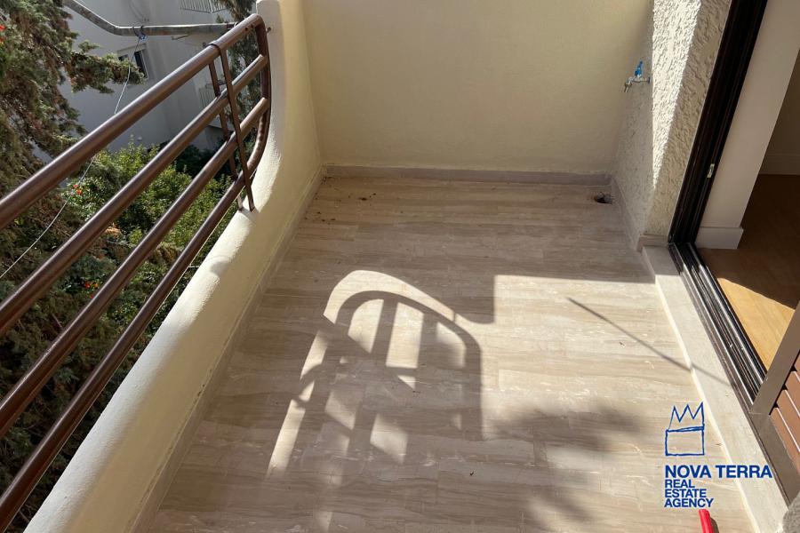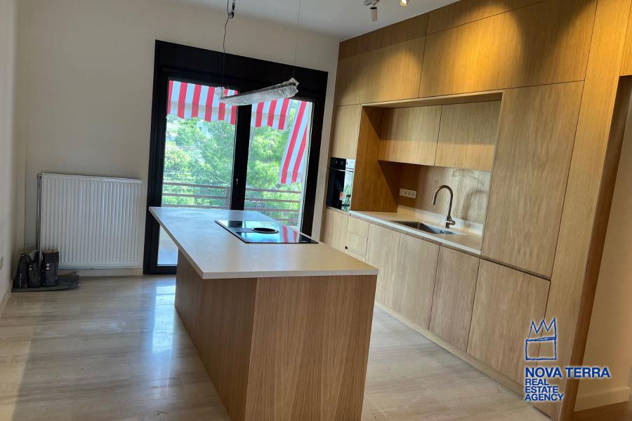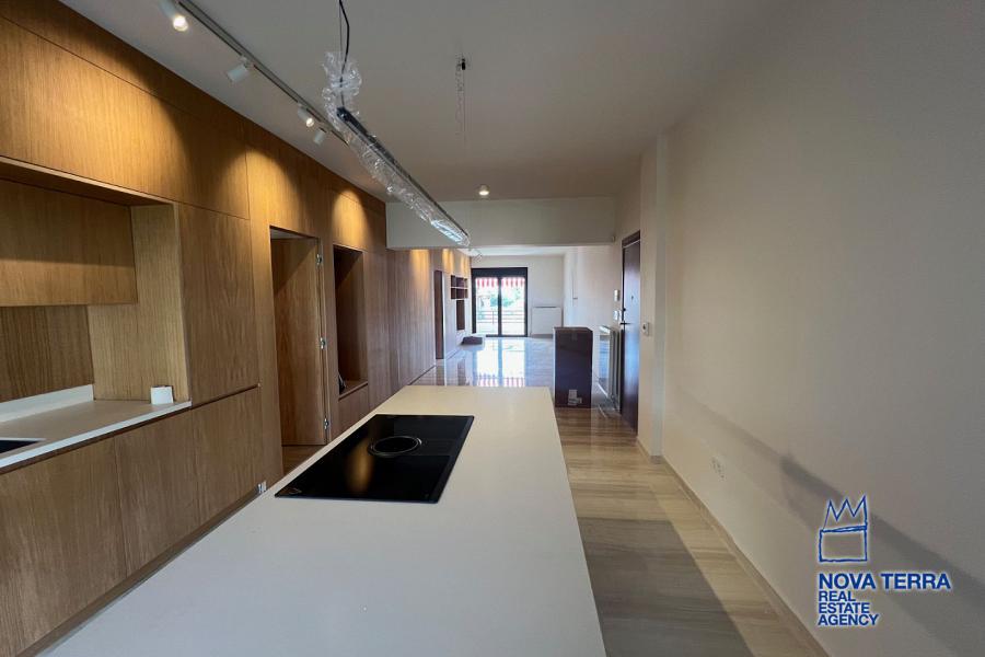 VOULIAGMENI - SYNIKISMOS EMPORIOU Apartment for Rent, 115 sq.m, built in 1970, 2 bedrooms, 3rd floor, Woodland view. Features include balcony, 2 bathrooms, kitchen, living room, refurbished, storage room, master bedroom, marble and wooden flooring, air conditioning, oil heating, access road, aluminum panels, security alarm, solar heating, study. Parking available. Energy class: C. Property ID: 46991. Visit www.nova-terra.gr for more information. Luxurious and in perfect condition. Located in a residential area.