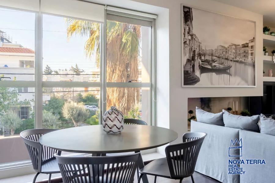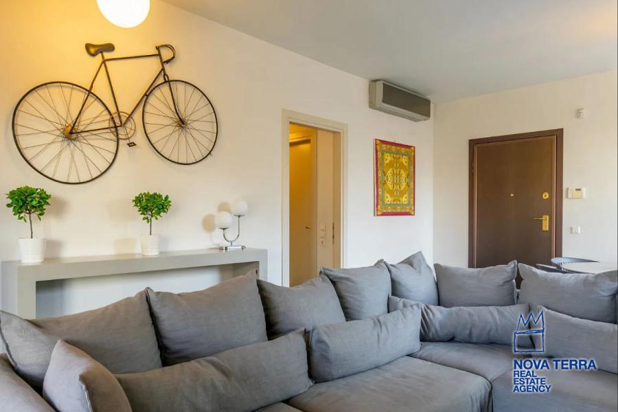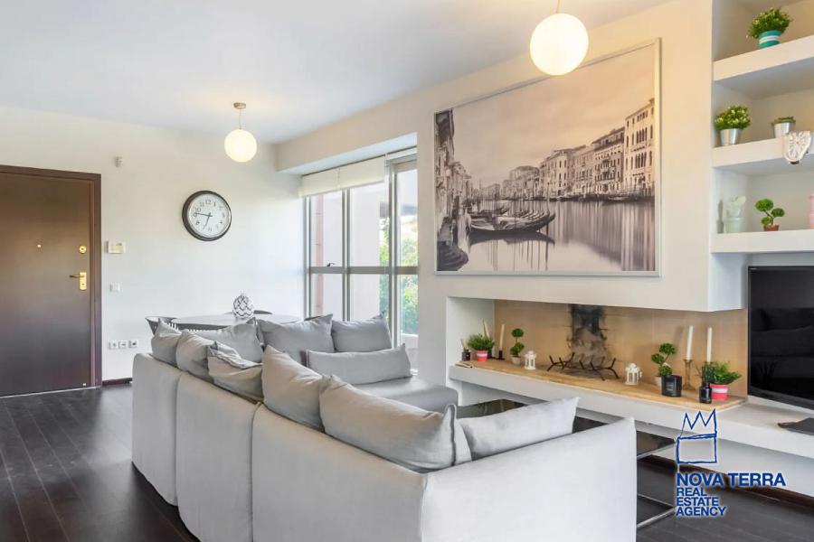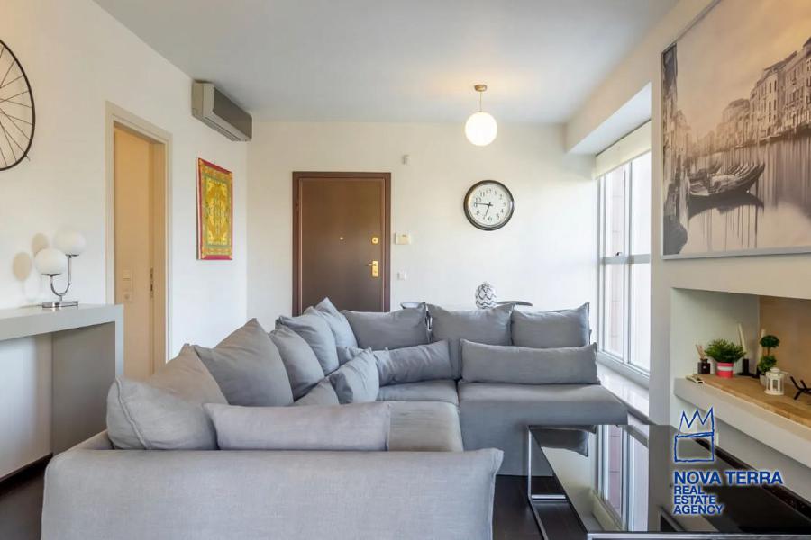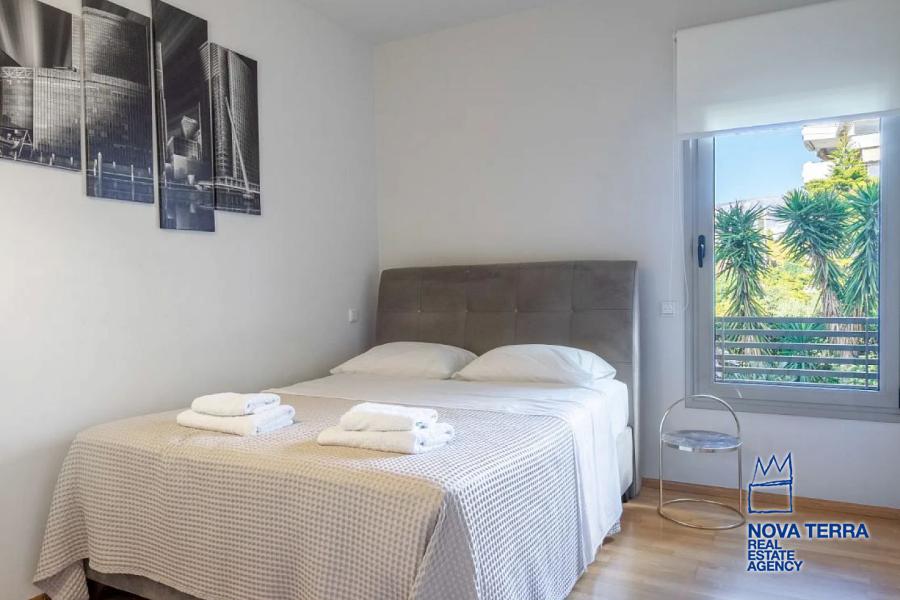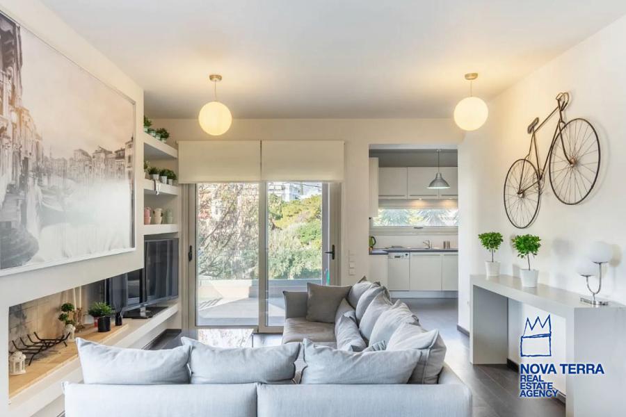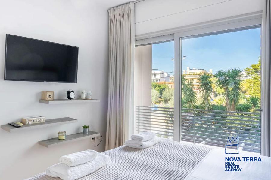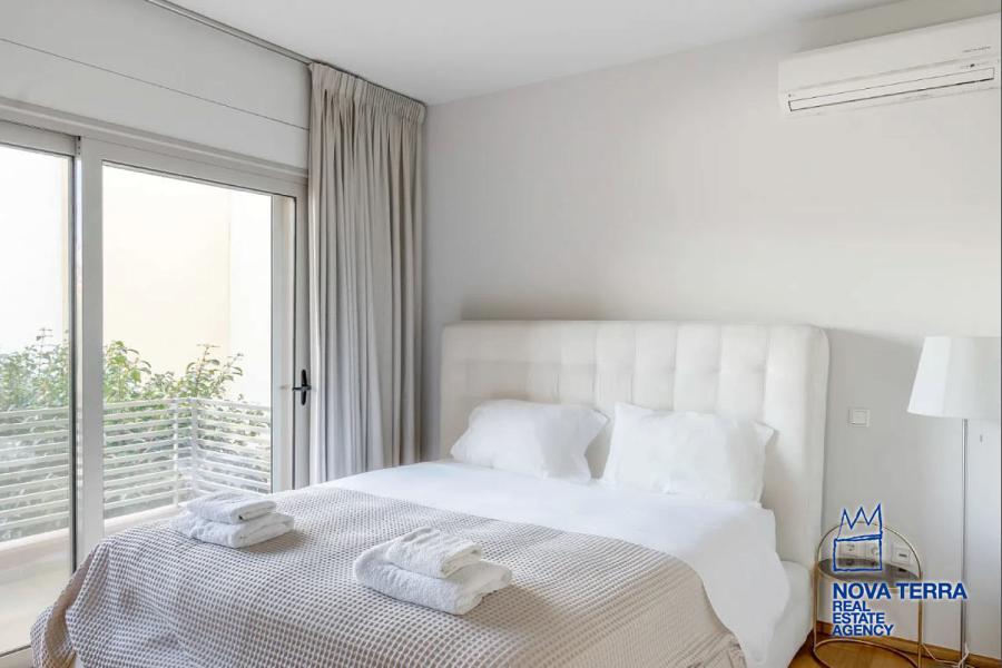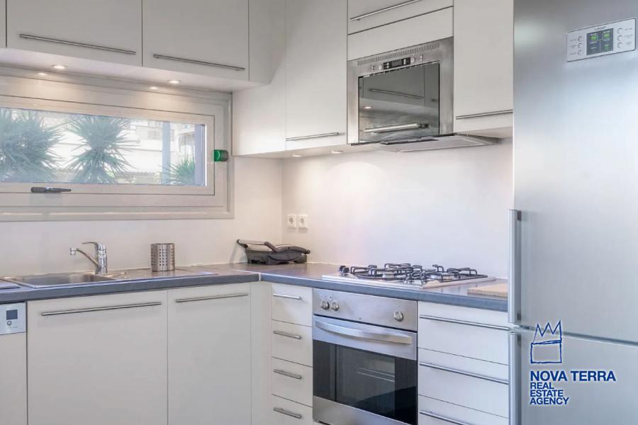 GLYFADA - KENTRO, Apartment,, Rental, 90 sq.m, year built 2014, 2 rooms, 1st, Various Characteristics: Balcony, Bath (2), Escalator, Fire Place, Furnished, Garden, Kitchen, Living room, Store Room, Flooring: Wooden floor, Heating: Air Conditioning, Access road, Aluminium panels, Bright, From Side to Side, Luxury, Newly built, Painted, Residential area, Security Alarm, Security Door, Solar Heating, In perfect condition: Parking area: Parking, Energy class: Β. property ID: 48736, www.nova-terra.gr