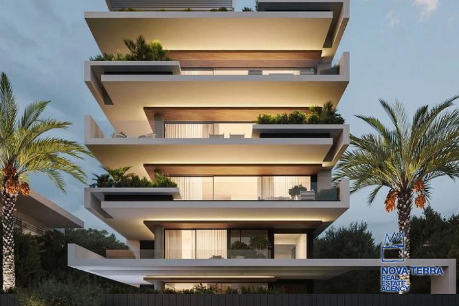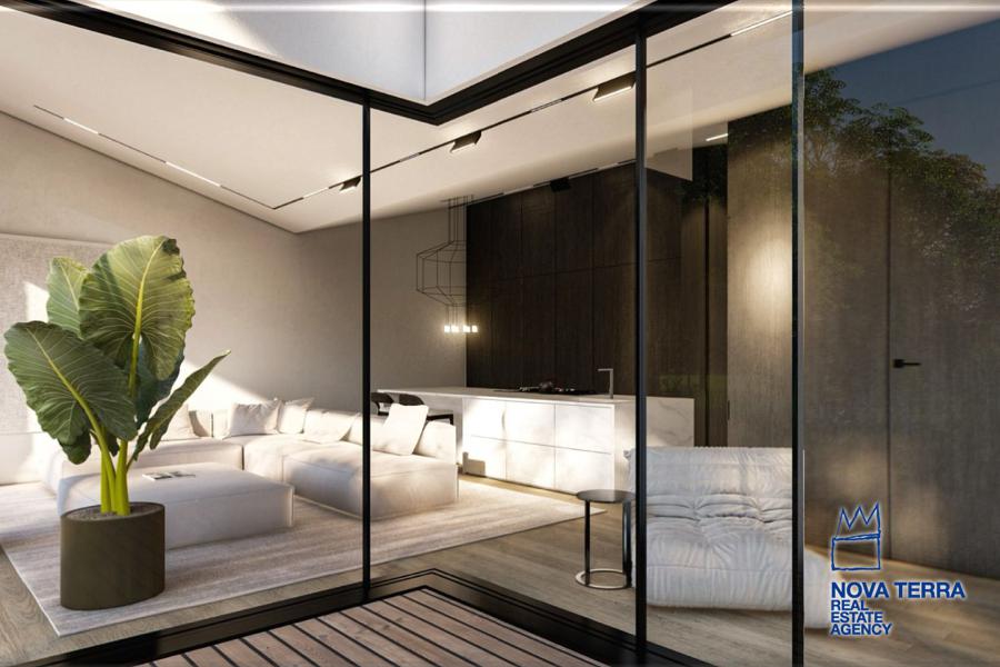 GLYFADA - KENTRO, Duplex / Triplex Apartment,, Sale, 158 sq.m, year built 2023, 3 rooms, Mezzanine, 1st, View: Various Characteristics: Balcony, Bath (3), Escalator, Fire Place, Kitchen, Living room, Store Room, Toilet, Master Bedrooms: 3 Master Bedrooms, Flooring: Laminate, Heating: Air Conditioning, Autonomous Heating (auto-system), Access road, Aluminium panels, Bright, Double-glazing, Facade, From Side to Side, Luxury, Minimal, Newly built, Painted, Residential area, Screens, Security Alarm, Security Door, Solar Heating, In perfect condition: : : : Parking area: Garage (2), Energy class: A. property ID: 51056, www.nova-terra.gr