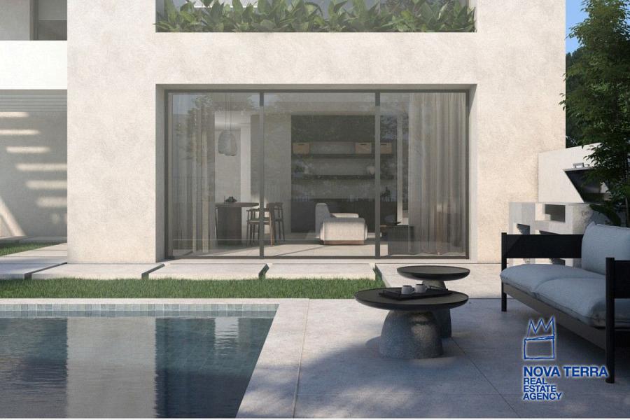 VOULA - EFOPLISTIKA, Duplex / Triplex Apartment,, Sale, 115 sq.m, on a plot of 200 sq.m, year built 2025, 2 rooms, Ground Floor, 1st, Various Characteristics: Balcony, Bath, Escalator, Fire Place, Kitchen, Living room, Store Room, Swimming Pool, Toilet, Heating: Air Conditioning, Floor heating, Access road, Aluminium panels, Bright, Double-glazing, Facade, From Side to Side, Luxury, Newly built, Night charge, Painted, Residential area, Security Door, Solar Heating, In perfect condition: Pets allowed: Satellite dish: Parking area: Garage (2), Energy class: A. property ID: 51966, www.nova-terra.gr