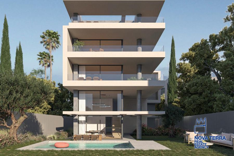 VOULA - VOULA KATO, Duplex / Triplex Apartment,, Sale, 236 sq.m, on a plot of 236 sq.m, year built 2025, 4 rooms, Basement, Ground Floor, 1st, Various Characteristics: Balcony, Bath (4), Escalator, Garden, Kitchen, Living room, Playroom, Store Room, Swimming Pool, Toilet, Flooring: Wooden floor, Heating: Floor heating, Access road, Aluminium panels, Bright, Double-glazing, Facade, From Side to Side, Luxury, Minimal, Night charge, Painted, Residential area, Security Door, Solar Heating, In perfect condition: Parking area: Parking, Energy class: A. property ID: 52200, www.nova-terra.gr