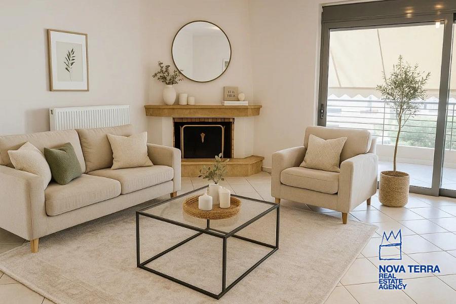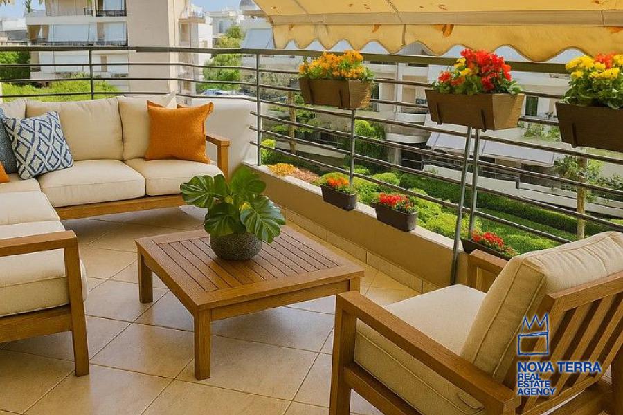 GLYFADA - GOLF, Duplex / Triplex Apartment,, Sale, 110 sq.m, year built 2004, 3 rooms, 3rd, 4th, View: Seaview, Various Characteristics: Balcony, Bath, Escalator, Fire Place, Kitchen, Living room, Store Room, Flooring: Tile, Heating: Air Conditioning, Αutonomous oil heating, Access road, Aluminium panels, Bright, Double-glazing, From Side to Side, Luxury, Night charge, Painted, Residential area, Security Alarm, Security Door, In perfect condition: Pets allowed: Parking area: Parking, Energy class: Β. property ID: 52290, www.nova-terra.gr