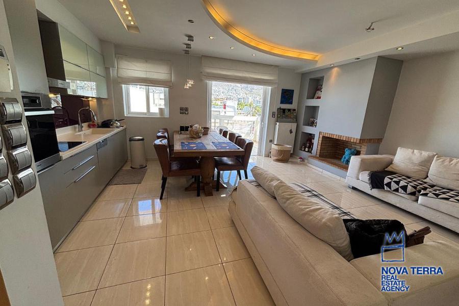 This 80 sq.m apartment in ALIMOS was built in 2010 and is located on the 5th floor. It features various characteristics such as a balcony, bath, escalator, fire place, kitchen, living room, and store room. The flooring is tile and the heating includes air conditioning and autonomous heating auto-system. The apartment also has access road, aluminium panels, double-glazing, facade, luxury features, and is newly built. It is bright, has night charge, is painted, and located in a residential area with a security door and solar heating. The property is in perfect condition and pets are allowed. Energy class: A. Property ID: 52376. Visit www.nova-terra.gr for more information.