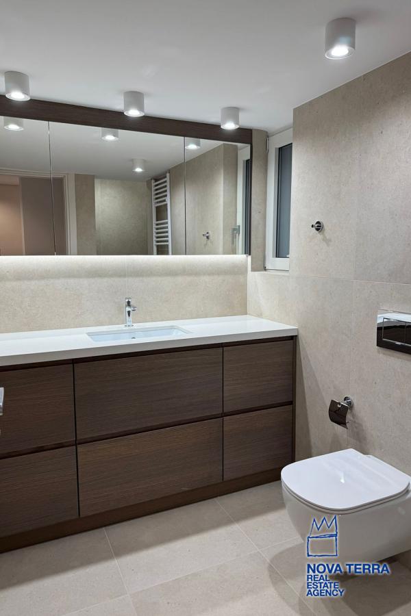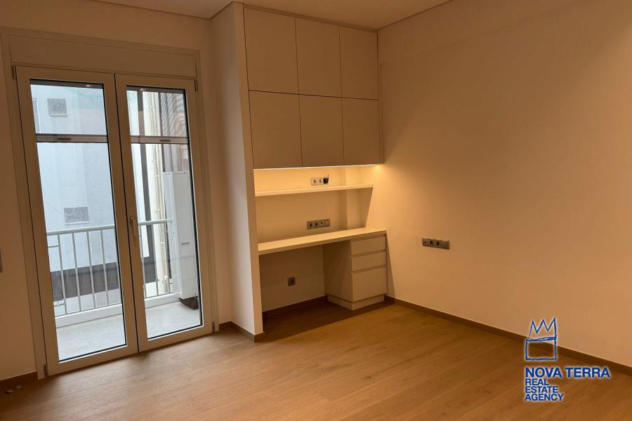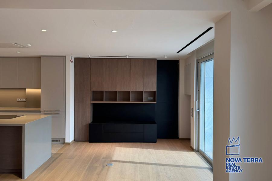 For sale in Athens - Pedion Areos: Renovated 121 sq.m apartment with 2 bedrooms, balcony, fire place, and luxury features. Built in 1972, this property boasts wooden flooring, autonomous gas heating, and solar heating. Energy class B. Property ID: 52645. Visit www.nova-terra.gr for more information.