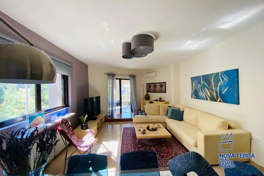 VOULA - PANORAMA, Apartment,, Rental, 115 sq.m, year built 1990, 2 rooms, 1st, Various Characteristics: Balcony, Bath (2), Escalator, Garden, Kitchen, Living room, Flooring: Murble, Heating: Air Conditioning, Autonomous Gas Heating, Access road, Aluminium panels, Bright, Double-glazing, From Side to Side, Luxury, Painted, Security Door, In perfect condition: Energy class: C. property ID: 52665, www.nova-terra.gr