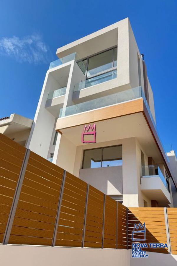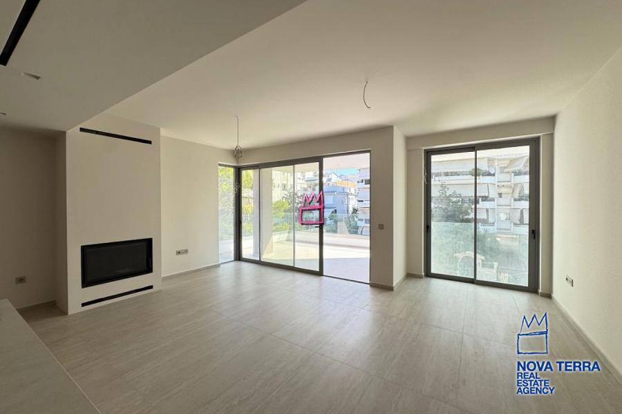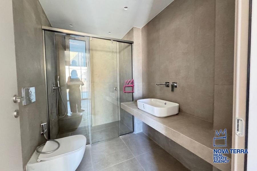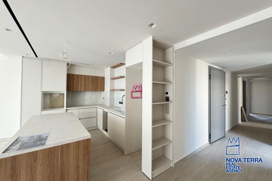 GLYFADA - PYRNARI, Apartment,, Rental, 113 sq.m, year built 2025, 3 rooms, 2nd, Various Characteristics: Balcony, Bath (2), Escalator, Fire Place, Kitchen, Living room, Store Room, Flooring: Wooden floor, Heating: Αutonomous oil heating, Access road, Aluminium panels, Bright, Double-glazing, Electric Roller Windows, Facade, From Side to Side, Luxury, Minimal, Newly built, Painted, pets allowed, Screens, Security Door, Solar Heating, Weekend Residence, In perfect condition: Pets allowed: Satellite dish: For investment: Parking area: Garage, Energy class: A. property ID: 52703, www.nova-terra.gr