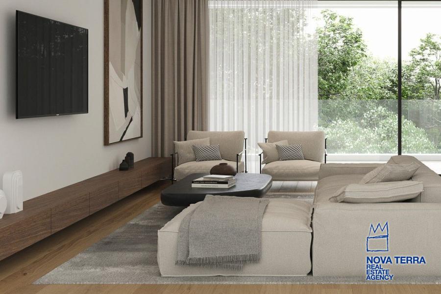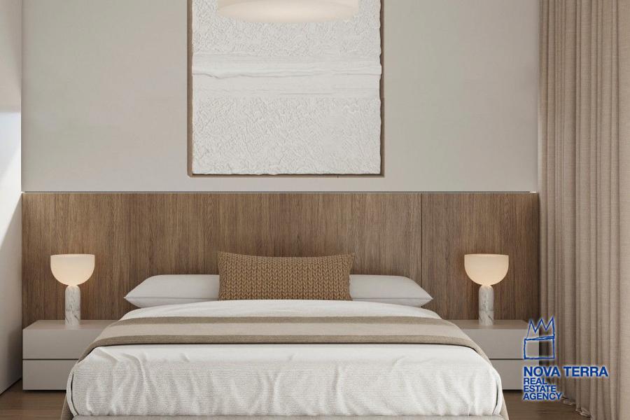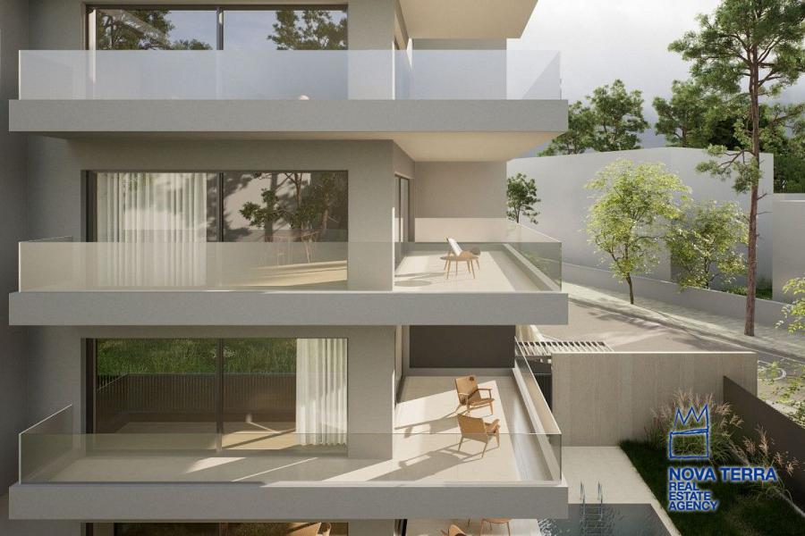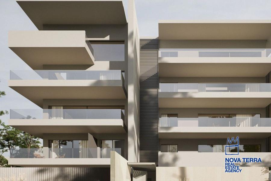 GLYFADA - EVRUALI, Apartment,, Sale, 107 sq.m, year built 2025, 2 rooms, 1st, 2nd, Various Characteristics: Balcony, Bath (2), Escalator, Fire Place, Kitchen, Living room, Store Room, Master Bedrooms: 2 Master Bedrooms, Heating: Floor heating, Heating pump, Access road, Aluminium panels, Bright, Double-glazing, Facade, From Side to Side, Luxury, Newly built, Painted, Residential area, Security Door, In perfect condition: Pets allowed: Satellite dish: Parking area: Parking, Energy class: A. property ID: 52704, www.nova-terra.gr