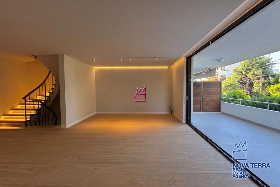 Bright and fully renovated in 2025. In a fantastic location in Voula in a quiet neighborhood, close to transportation and schools. Going up to the 1st floor we find a spacious living room with an open-plan kitchen, hidden lighting, oak floors and a large veranda. On the same floor there is a w/c and an extra room that can be used as an office or service/ utility room and installation for a fireplace.