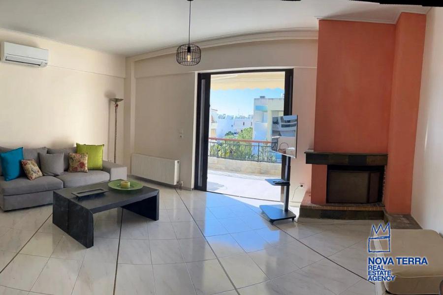 GLYFADA - EVRUALI, Apartment,, Rental, 80 sq.m, year built 1990, 2 rooms, 4th, Various Characteristics: Balcony, Bath, Escalator, Fire Place, Furnished, Kitchen, Living room, Penthouse, Refurbished, Store Room, Flooring: Tile, Heating: Air Conditioning, Αutonomous oil heating, Access road, Aluminium panels, Bright, Double-glazing, Facade, From Side to Side, Luxury, Night charge, Painted, Residential area, Security Door, Solar Heating, In perfect condition: Parking area: Parking, Energy class: D. property ID: 52856, www.nova-terra.gr