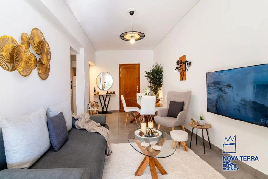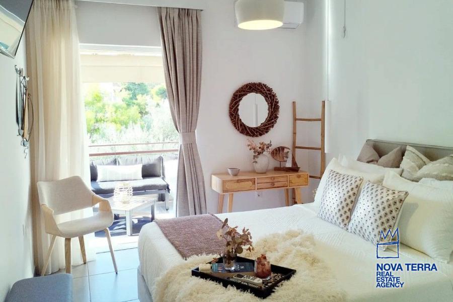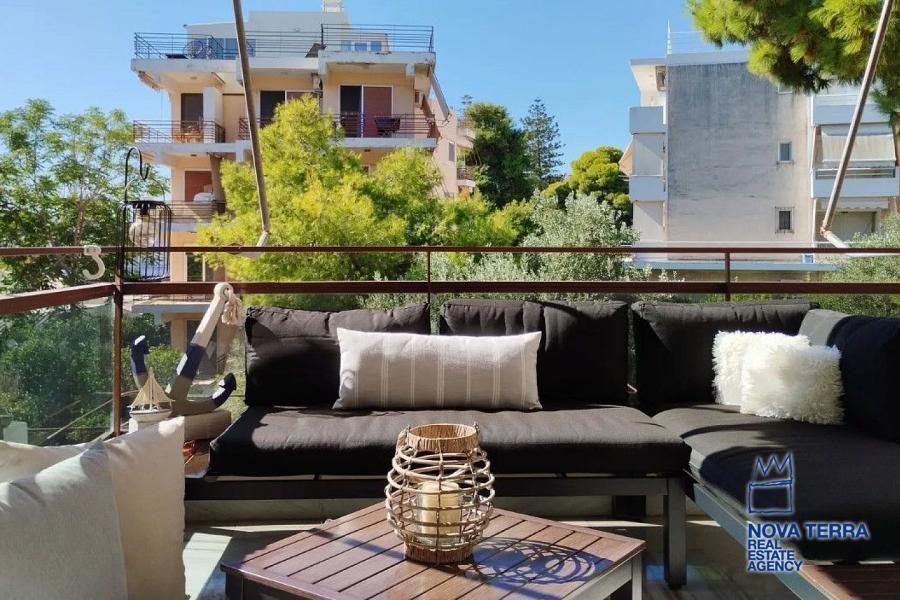 VARKIZA - VARKIZA, Apartment,, Sale, 52 sq.m, year built 1978, renovated in 2020, 1 rooms, 2nd, View: Seaview, Various Characteristics: Balcony, Bath, Escalator, Garden, Kitchen, Living room, Refurbished, Flooring: Tile, Heating: Air Conditioning, Access road, Aluminium panels, Bright, Double-glazing, From Side to Side, Luxury, Night charge, Painted, Residential area, Screens, Security Door, Tents, In perfect condition: Pets allowed: Parking area: Parking, Energy class: D. property ID: 53030, www.nova-terra.gr